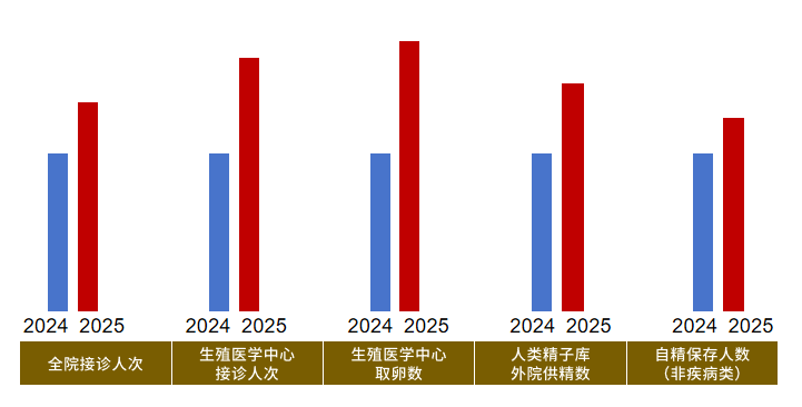 以患者为中心,聚焦医院高质量发展目标,大力提升医疗质量,优化就诊流程。生殖医学中心、男科入选2025广东医院高水平专科巡礼名单。2025年医疗服务能力持续提升,医疗业务量连续5年实现增长。全院接诊人次、生殖医学中心接诊人次和取卵周期数、人类精子库外院供精数量、生育力自精保存人数(非疾病类)等实现正增长。
